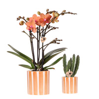 Kolibri Company | Plantenset Oranje Phalaenopsis Orchidee Bolzano en Succulent incl. keramieken sierpotten